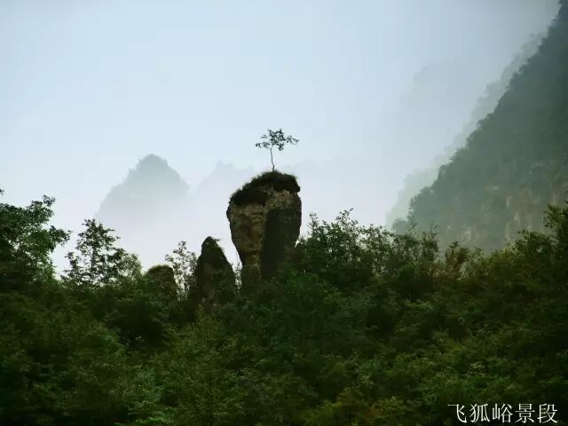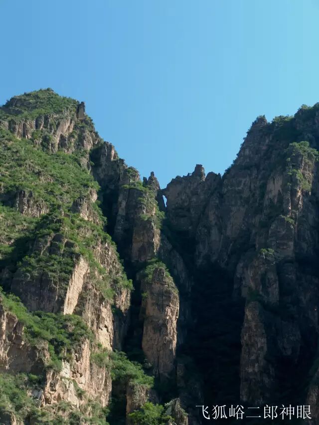 从游客中心出发就开始了你的飞狐峪之旅。自飞狐山庄前行两公里到达“二郎神眼”景点。